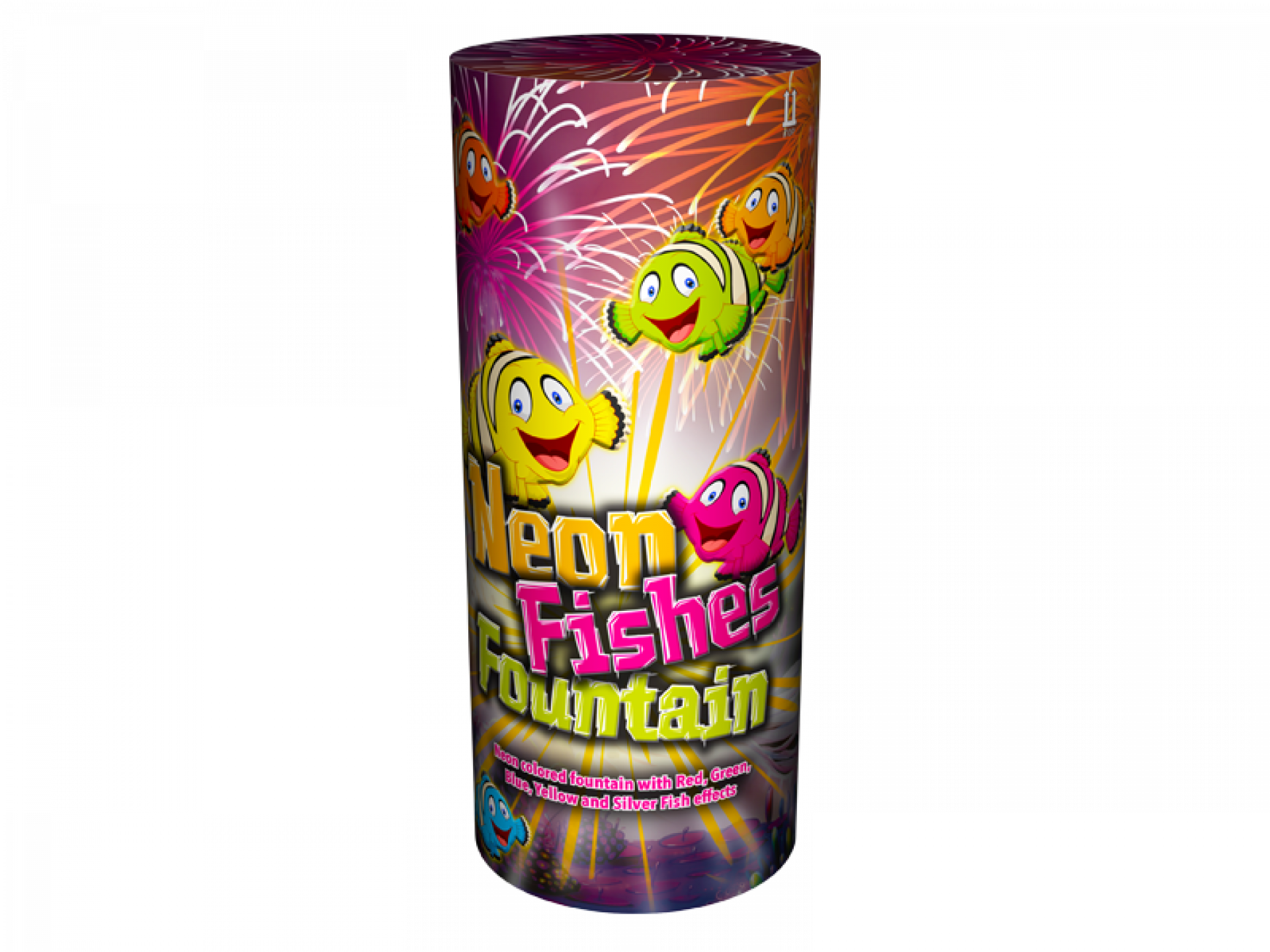 Leukste familie fontein met rode, groene, blauwe, gele en zilveren visjes.